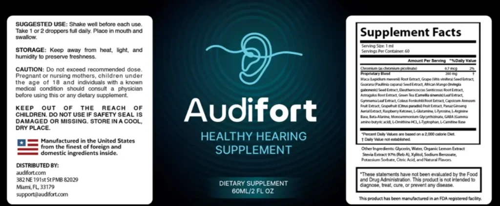 Audifort is designed for adults of all ages and has been formulated with 100% natural, plant-based ingredients that are carefully tested for purity and safety. According to the official website, Audifort is manufactured in FDA-approved facilities following strict GMP standards to ensure consistent quality.